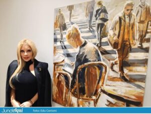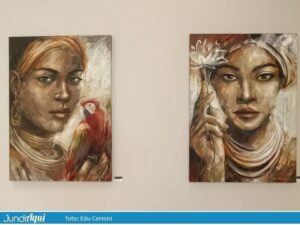 Gisele Ulisse expõem suas obras no showroom do Mondo Tebas. São 22 quadros na mostra “Faces Femininas e Tramas Urbanas”, com curadoria de Sandra Setti.