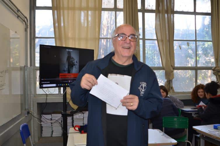 Edu Cerioni se emocionou com a recepção do Segundo Ano C, alunos respeitosos, atentos e com cabeça aberta a novos conhecimentos.
