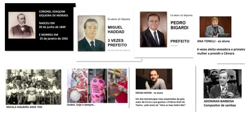 Joaquim Siqueira Moraes teve sua história resgatada também, assim como ex-alunos famosos, casos de Miguel Haddad e Pedro Bigardi, que foram prefeitos, e Ana Tonelli, que foi recordista como vereadora. Outros com história no Siqueira destacados foram o compositor Adoniran Barbosa e o dramaturgo Sérgio Roveri.