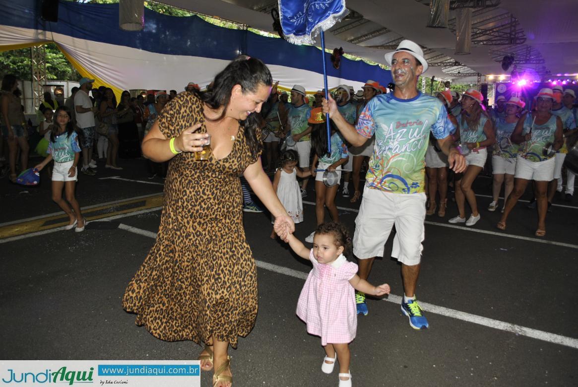 Três gerações de foliões festejaram os 30 anos da banda e 75 do Azul e Branco, com bateria de arrepiar