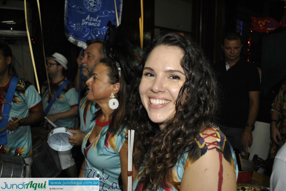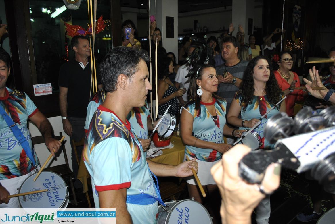 Teve som de Claudião e banda, a Samba dos Amigos, a presença sempre marcante da Bateria Azul e Branco, do Clube Jundiaiense, e comemoração de aniversário de Iliana Mendonça, braço direito da “deretora” Gisela Vieira no comando do bloco.