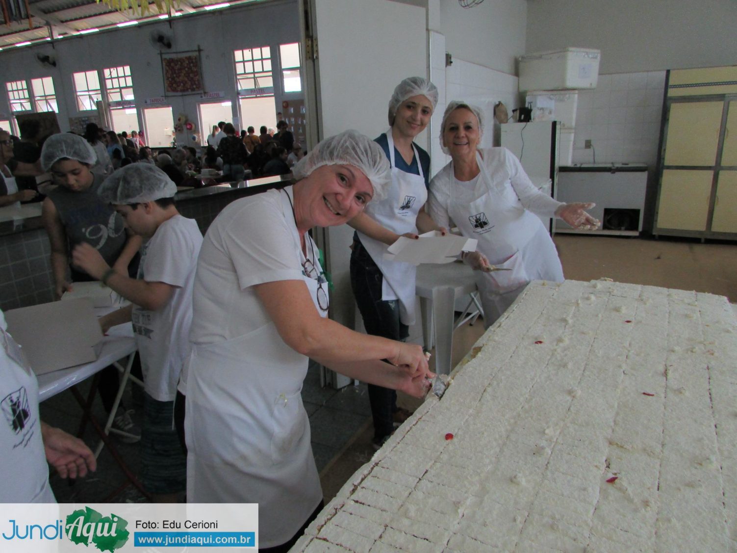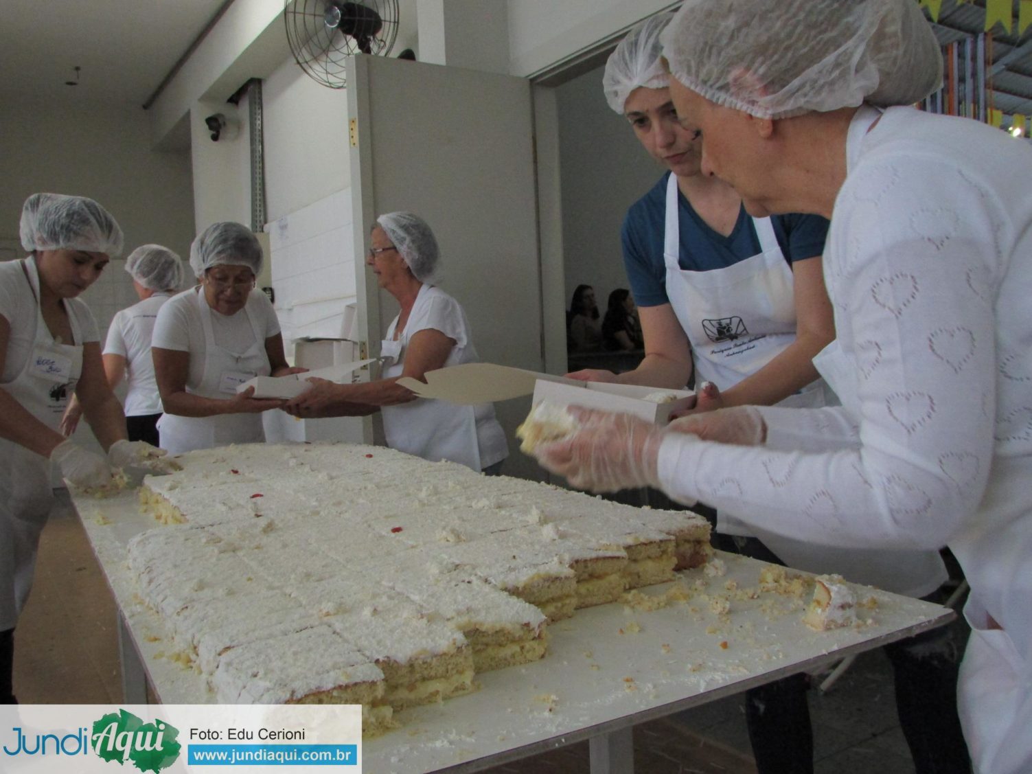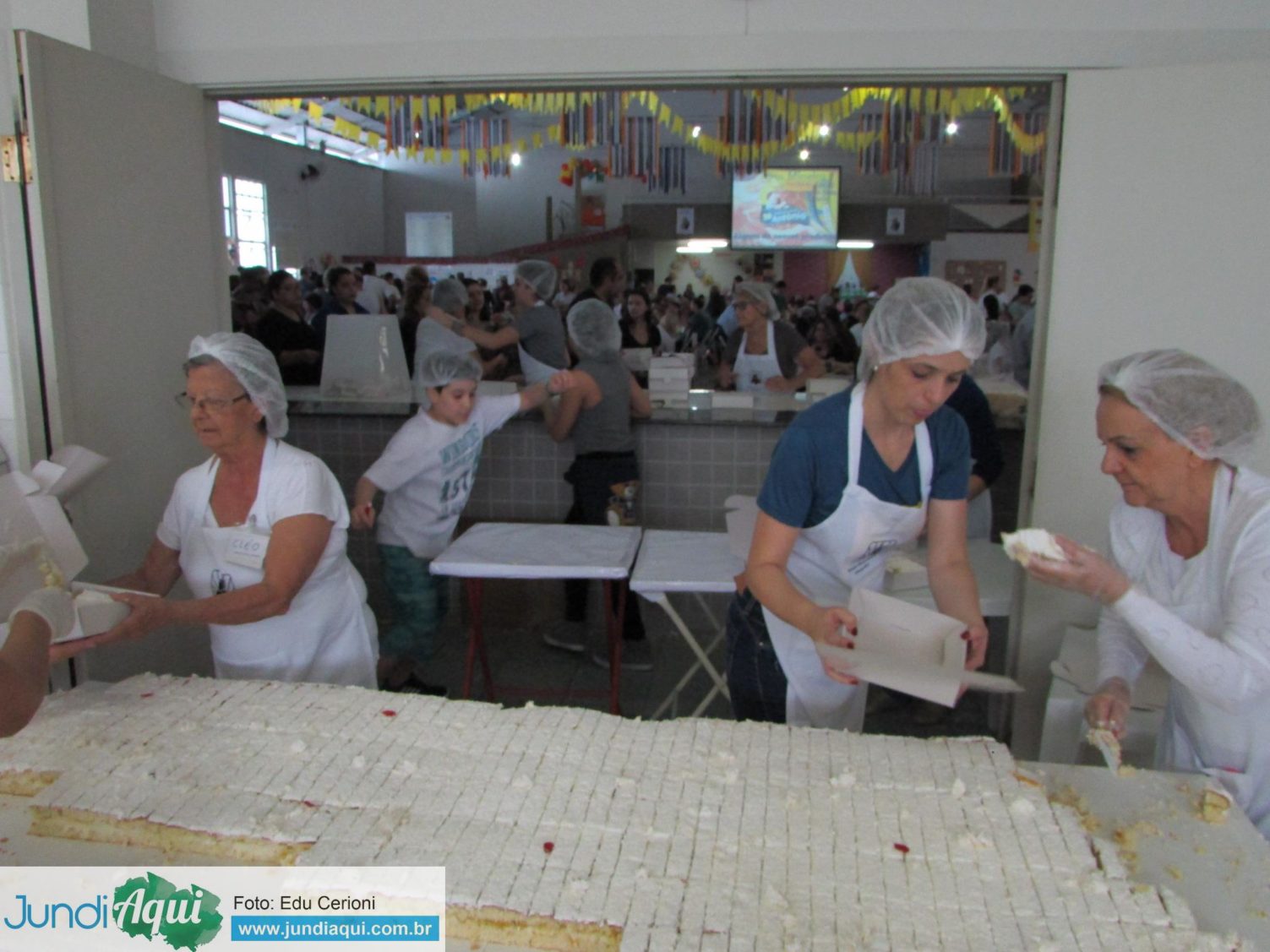 Aqui, fotos dos voluntários preparando e vendendo os pedaços de bolo, uma alegria para quem conseguia garantir o seu, como foi o caso de Sandra Bernardi…