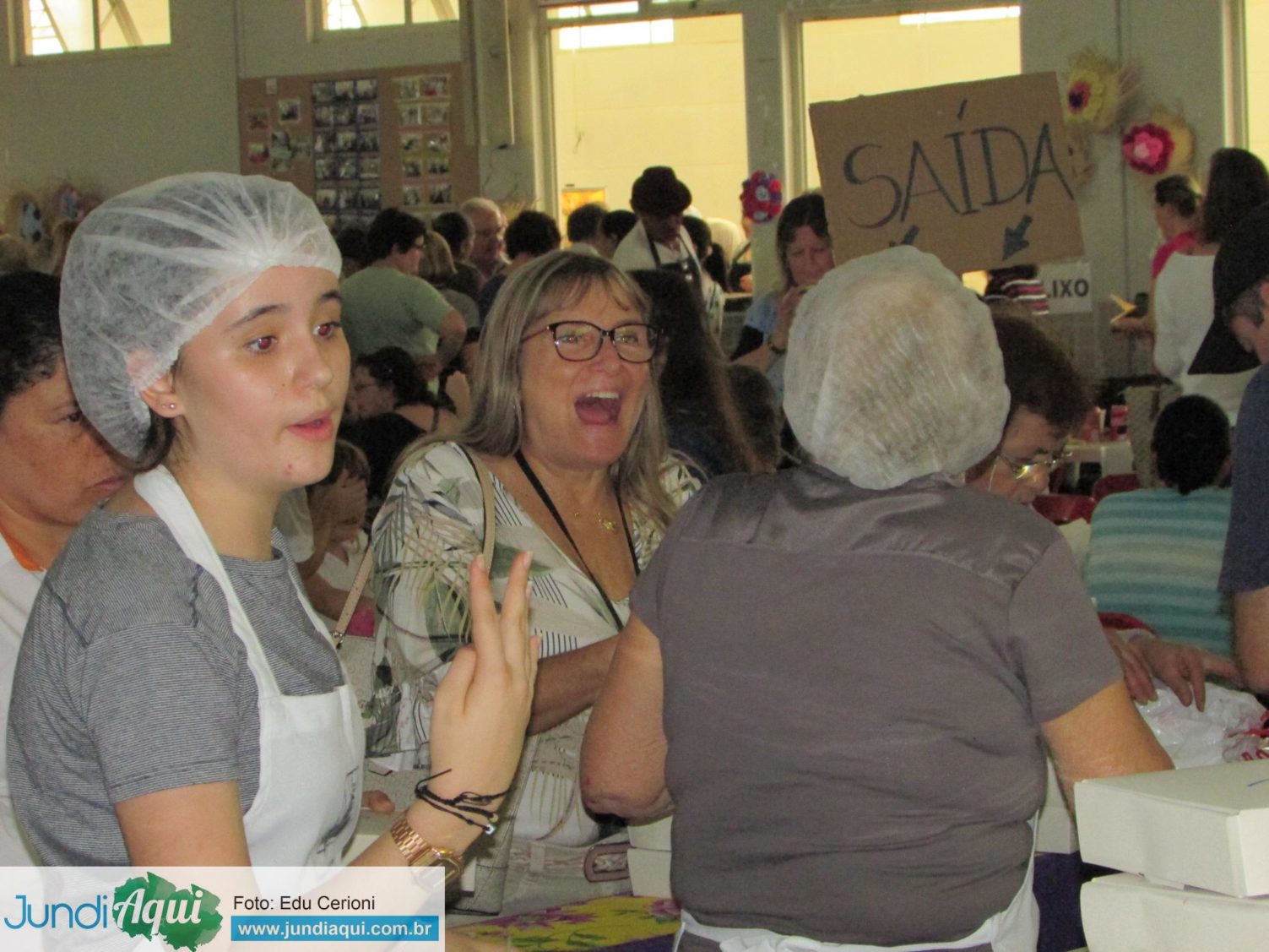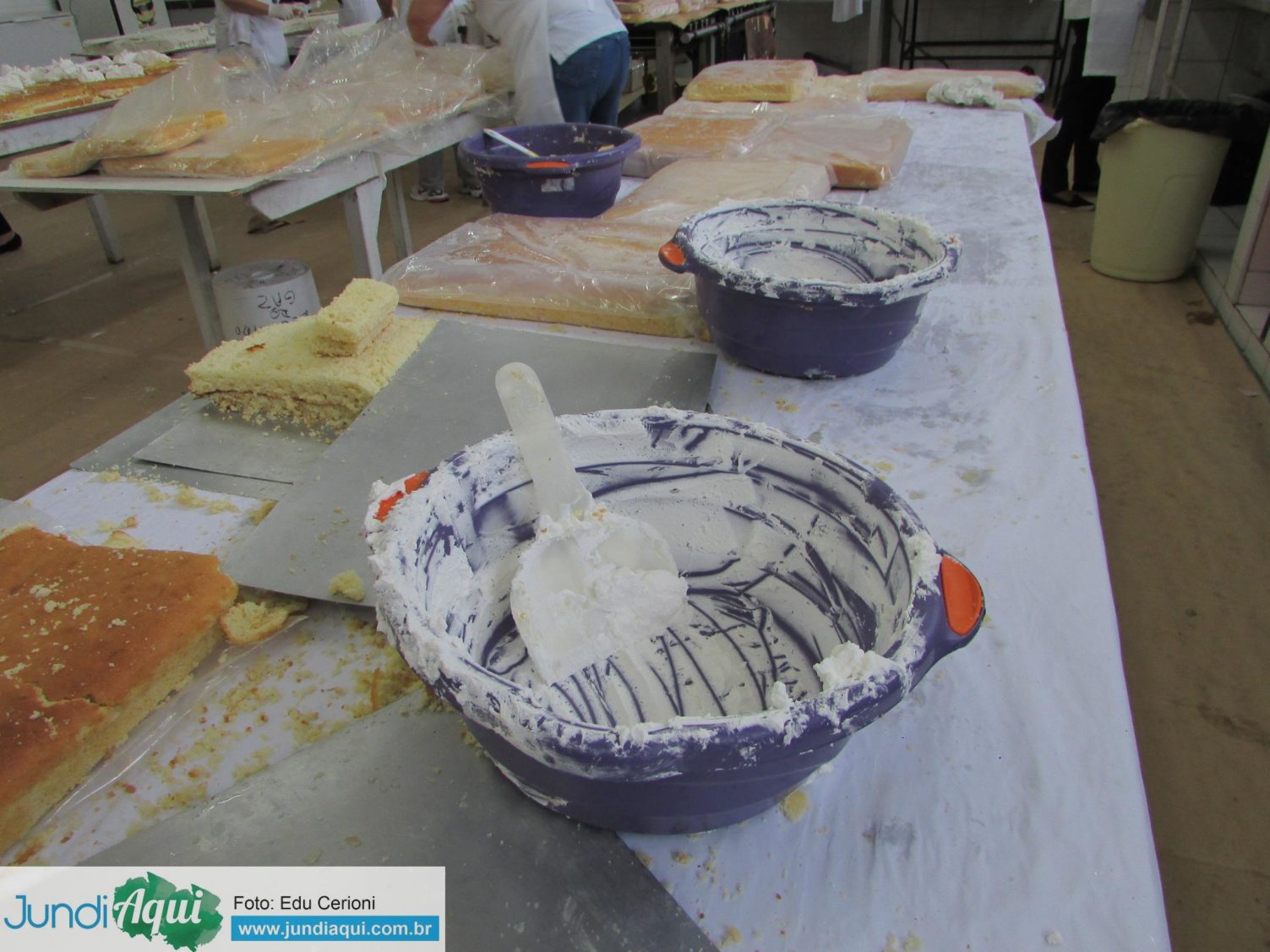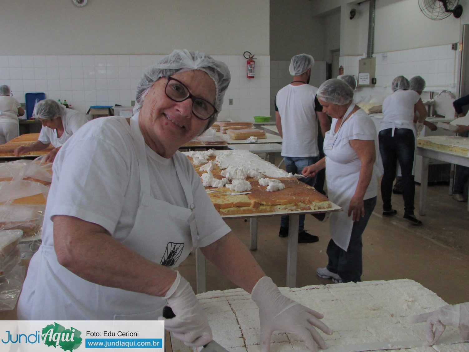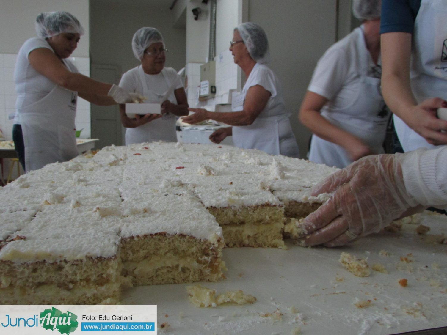 Aqui, fotos dos voluntários preparando e vendendo os pedaços de bolo, uma alegria para quem conseguia garantir o seu, como foi o caso de Sandra Bernardi…