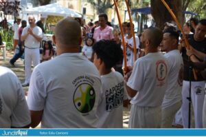Na Praça das Bandeira, que fica bem em frente à sede do 28, rolou apresentação de capoeira, sarau comandado por Mara Lígia Biancardi e Célia Luh, show de samba e outras atrações. Escritores de Jundiaí colocaram seus livros à venda.