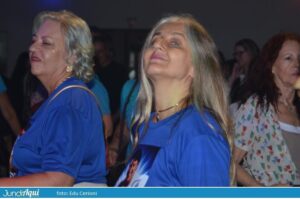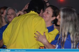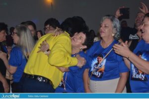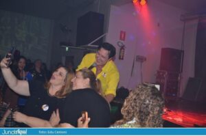 Em meio à fumaça de gelo seco, Rudy desceu do palco já na primeira música para beijar, abraçar e receber o carinho de centenas de fãs. Muitas usaram uma camiseta azul feita especialmente para esse aniversário. Olho no olho, a maioria conhecida pelo nome e todas empolgadas para mais uma noite dançante…