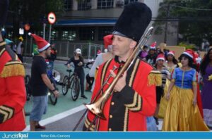 Ninguém perdeu o pique por conta dos diferentes sons que as bandinhas produziram, elas que vieram atrás da Bamalo. Uma delas com um Papai Noel negro, de barba branca “verdadeira”, como fez questão de avisar, muito fotografado por todos ao tocar sua tuba.