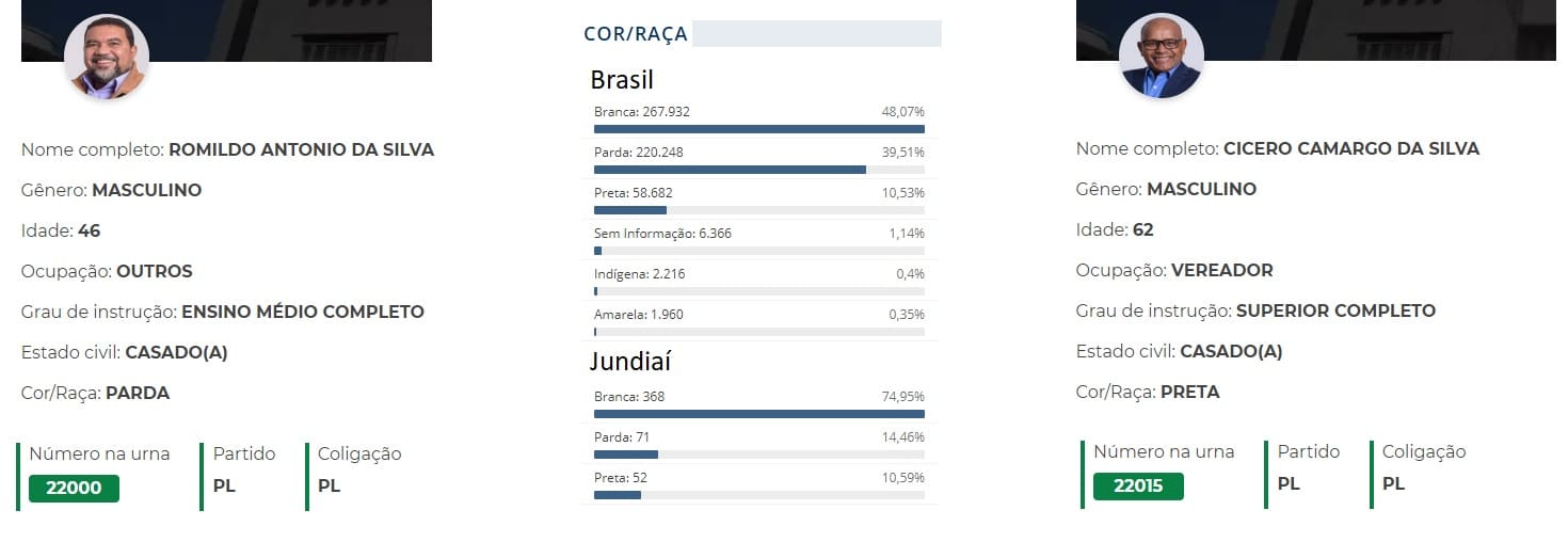 Dos 19 vereadores eleitos no último domingo (15) em Jundiaí, 17 deles se declararam brancos nos pedidos de registro das candidaturas entregues à Justiça Eleitoral, quase 90% do todo. Um único dos eleitos se disse negro, Cícero da Saúde (foto no alto), e um outro pardo, Romildo Antonio (foto mais abaixo). Uma coincidência é o sobrenome Silva de ambos.