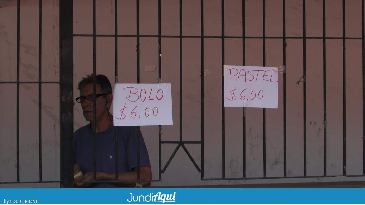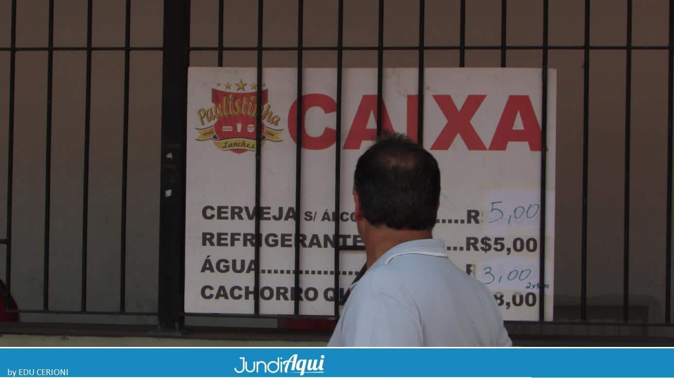 O copo de água lá dentro custa R$ 3,00 e tem copo de Coca-Cola ou de cerveja sem álcool por R$ 5,00. Com R$ 6,00 as opções são pastel ou bolo – isso mesmo, com cobertura de chocolate, algo que nunca tinha visto em um campo de futebol. O mais caro do bar é o cachorro quente, R$ 8,00.