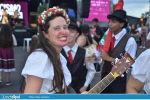 Tem todo sábado e domingo, puxada pelo Grupo Folklorístico Stella Bianca com seu maestro no acordeon e cantores, reforçado por outros artistas circenses, por músicos de sopro e com vinheteiras e o pessoal da Vila dos Italianos atraindo as pessoas para a roda de dança e com a majestade da Corte da Uva. Impossível ficar passível diante de tanta alegria contagiante.