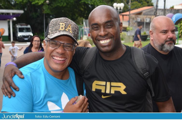Tem até o prefeito Luiz Fernando Machado e o gestor de Finanças, Antonio José Parimoschi, em meio a abraços e entrando no time da inclusão, com a turma dos sinais de Libras.