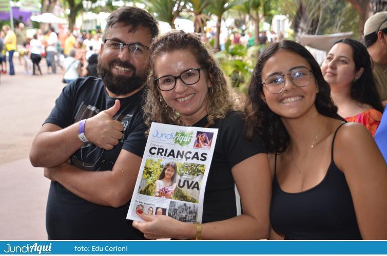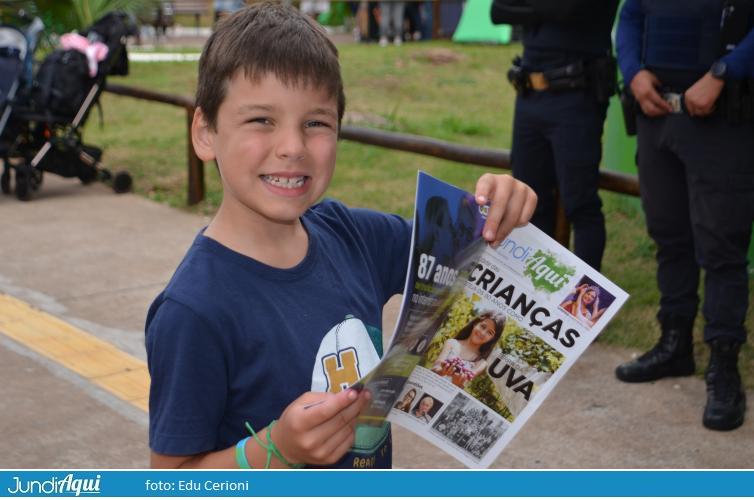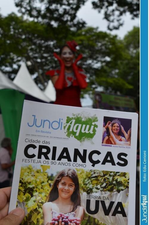 Um dia quase tão lindo quanto os sorrisos das crianças com o JundiAqui em Revista nas mãos, publicação distribuída gratuitamente para comemorar os 90 anos de Festa da Uva. Revista que foi parar nas mãos até da mulher da perna-de pau, do sanfoneiro que anima a pisa da uva, de uma infinidade de pessoas interessadas em conhecer mais da história da uva Niagara Rosada Jundiahy e de nossa cidade.