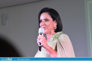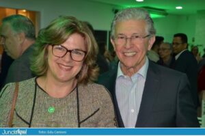 Leandra reuniu a equipe no palco, ganhou flores da filha Natália, que não escapou das brincadeiras, e arrancou risos e palmas em vídeo que apareceu fazendo uma dancinha na porta da Catedral. Ela citou quatro homens que lhe ajudaram muito, um deles o marido Maurício, médico de perícias no INSS e que, depois de ver que a esposa tinha se jogado de cabeça e coração na presidência da ACE, sempre lhe apoiou. “Ele teve a ombridade de não se incomodar com o brilho da esposa, como tantos fazem”, elogiou. Os outros foram o próprio Fabrício, “um vice leal, bonitão e elegante”, e os ex-presidentes que estavam ali nesta quinta, Elton Monteiro e Mark William Ormenese Monteiro.