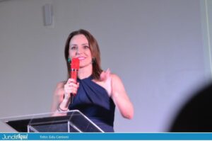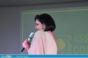Um Tsunami, como ela contou ser chamada por sua equipe, Leandra deu show de simpatia, de empatia e destacou firmemente sua condição de primeira mulher e com deficiência física a quebrar tabu e comandar a associação que tem 102 anos. “Estou extremamente orgulhosa. Não é reclamar de machismo, não, mas pergunto: onde estava a mulher? Antes de encarar o desafio, consultei meu marido e ele disse: ‘Não vá’. Consultei meu sócio na escola e ele também disse: ‘Não vá’. Pedi a Jesus uma luz e fui. Que mais mulheres participem das decisões da nossa entidade.”