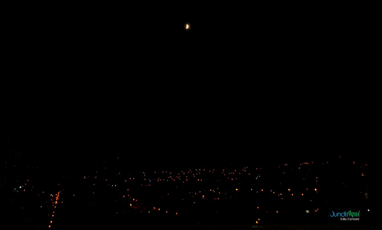 Uma visão do alto do morro da Vigorelli para o bairro do Vianelo, em Jundiaí, às 19h15 deste 16 de julho de 2019, quando nosso planeta fez “sombra” na imagem da Lua, em uma posição relativamente alta no céu.