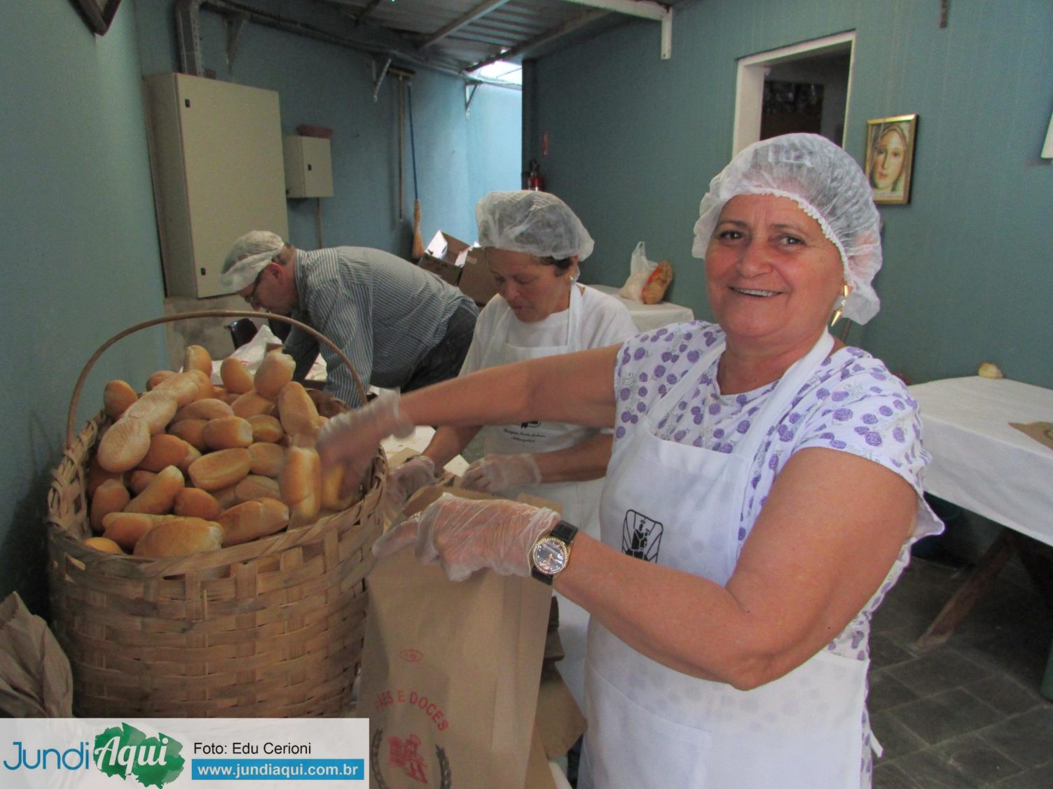 A fila do bolo do santo foi concorrida. Teve distribuição de pães. Sobre o pão bento, a orientação era para que as pessoas levassem, comessem e também dessem aos pobres. “Nada de guardar em lata de arroz e deixar o pão ficar duro”, disse o padre Márcio.