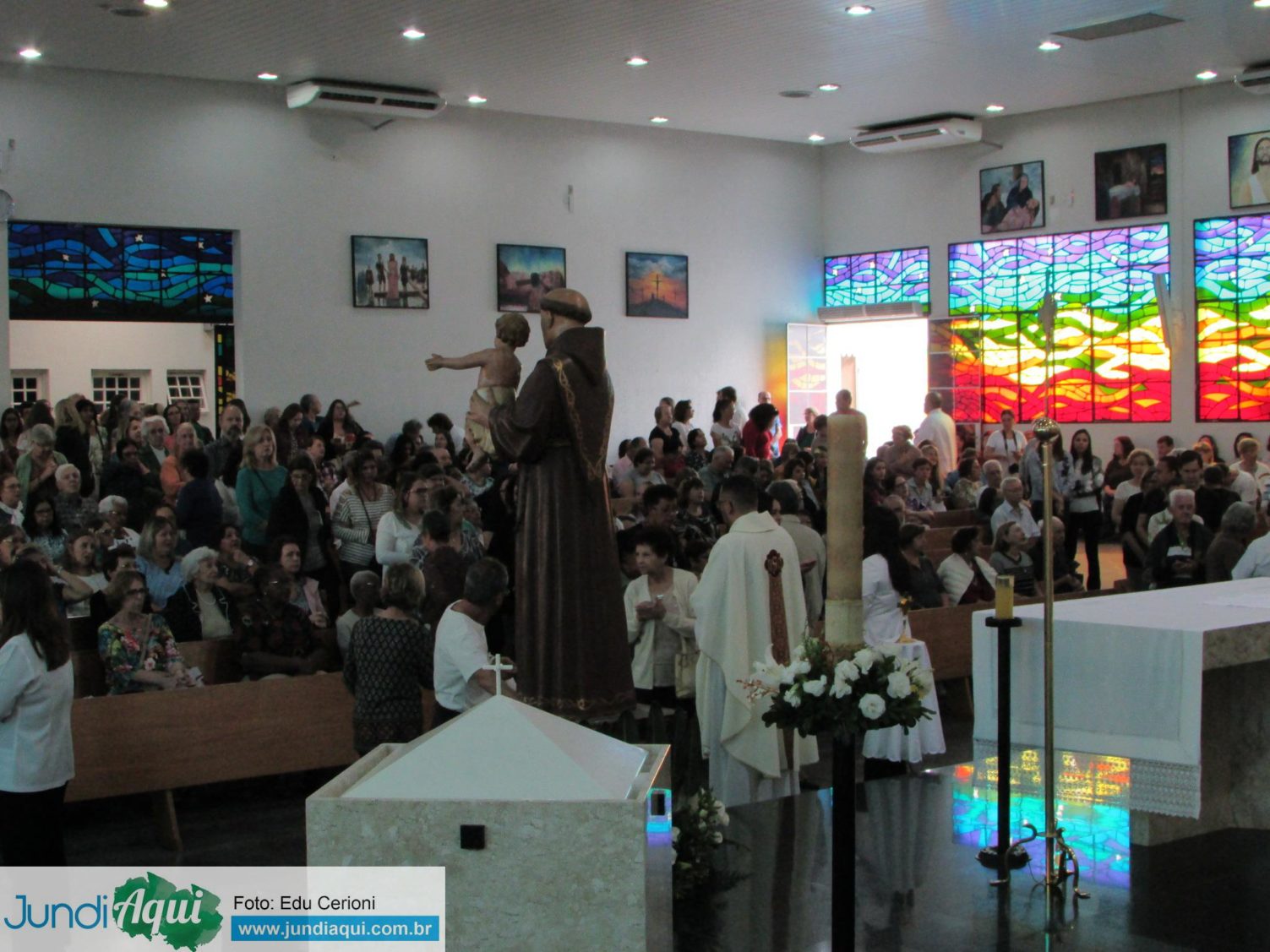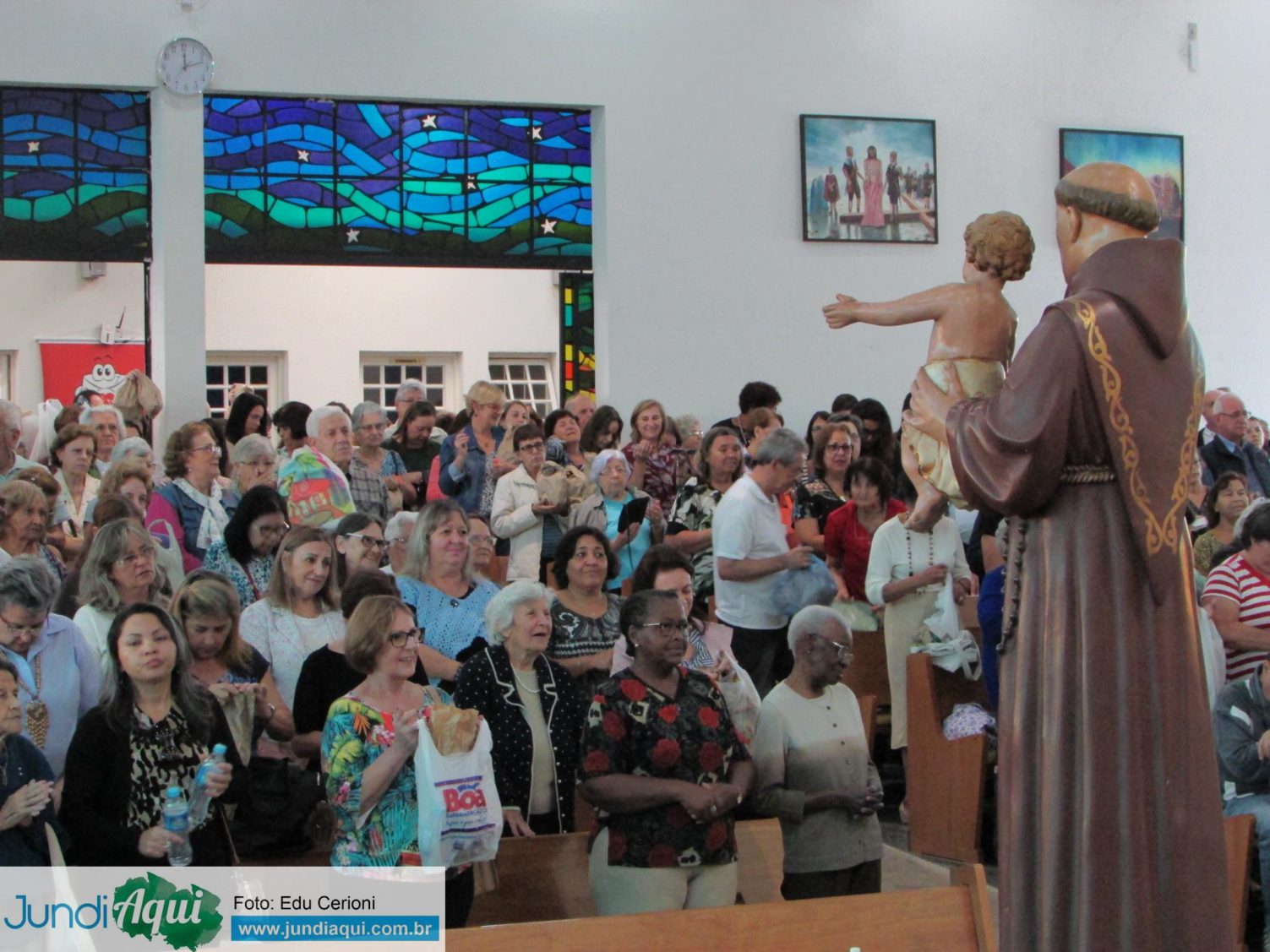 A quarta-feira (13) foi de festa em Jundiaí pelo Dia de Santo Antônio, conhecido como “casamenteiro”. A Igreja do Anhangabaú recebeu uma multidão de fiéis desde a manhã e seguiria com sua cantina aberta até as 22 horas. Foram diversas missas rezadas e o bispo Dom Vicente Costa foi prestigiar o almoço preparado pelos voluntários.