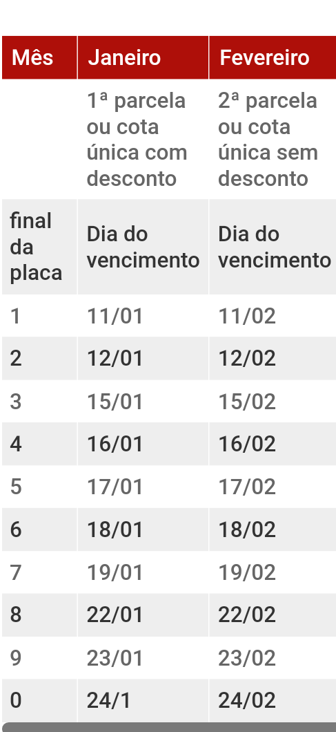 IPVA vence a partir do dia 11