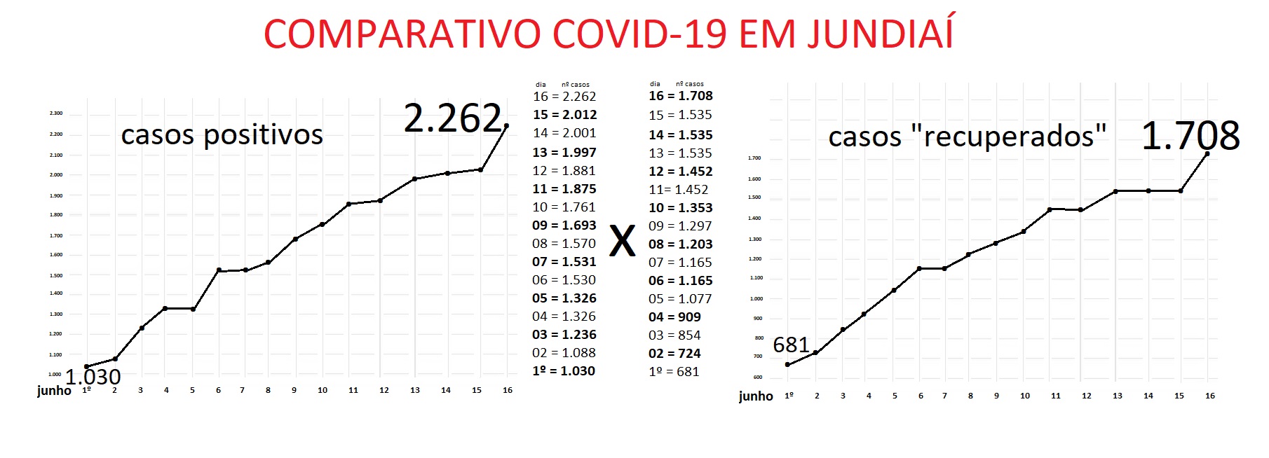 Também foi grande o número de “recuperados”, 173, com o que passaram de 1.535 na segunda (15) para 1.708 nesta terça. São os pacientes com exame positivo para a Covid-19, entre os que foram hospitalizados e já estão recuperados e outros assintomáticos.