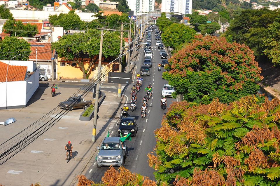 Um pequeno e barulhento grupo de pessoas em carros e motos circulou por Jundiaí neste domingo (19), versão local das carreatas de bolsonaristas pela liberação total do comércio (na prática, contra o isolamento social preventivo ao coronavírus).