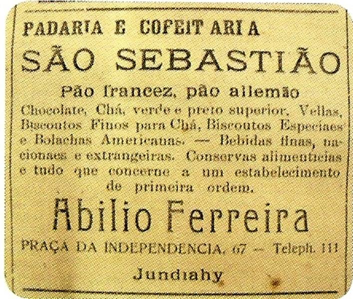 Em 1915, Abílo Ferreira, um imigrante português, fundou em Jundiaí a Padaria e Confeitaria São Sebastião, que tinha como endereço  o número 67 da Praça da Independência (hoje Praça Governador Pedro de Toledo); seu telefone, 111.